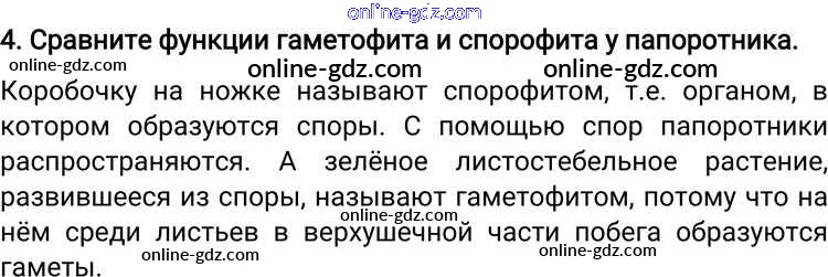 Готовые домашние задания по Биологии за 6 класс Учебник Пономарева, Корнилова Алгоритм успеха 2018 - Вопросы §22. Плауны. Хвощи. Папоротники 4