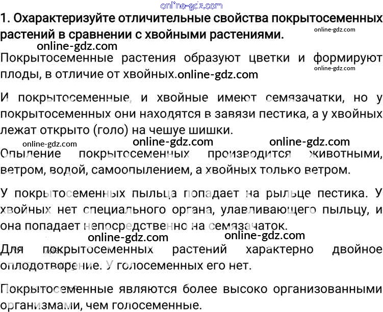 Готовые домашние задания по Биологии за 6 класс Учебник Пономарева, Корнилова Алгоритм успеха 2018 - Вопросы §24. Отдел Покрытосеменные. Общая характеристика и значение 1