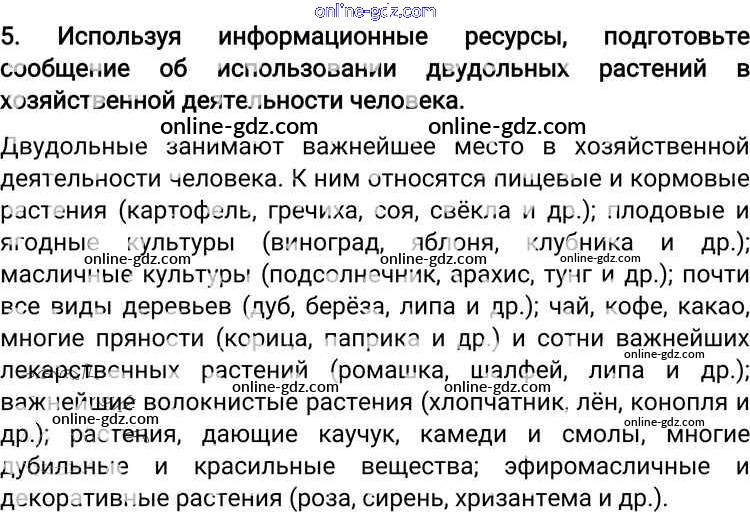 Готовые домашние задания по Биологии за 6 класс Учебник Пономарева, Корнилова Алгоритм успеха 2018 - Вопросы §25. Семейства класса Двудольные 5