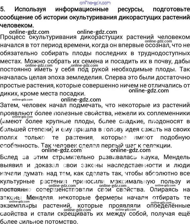Готовые домашние задания по Биологии за 6 класс Учебник Пономарева, Корнилова Алгоритм успеха 2018 - Вопросы §28. Разнообразие и происхождение культурных растений 5