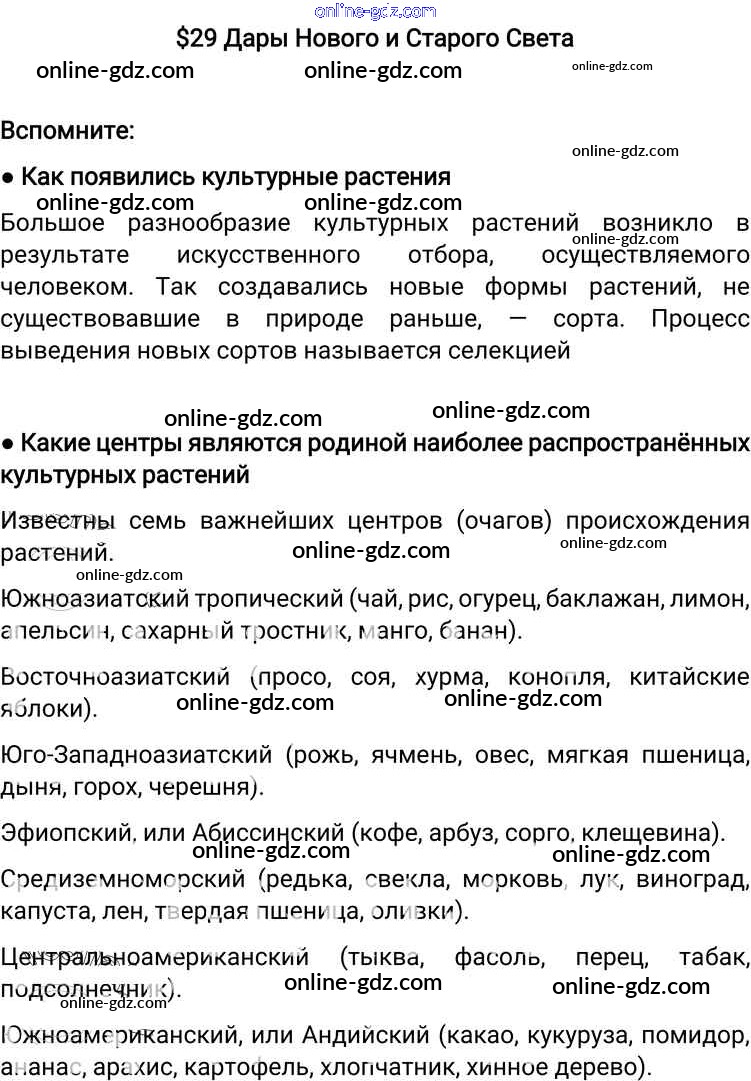 Готовые домашние задания по Биологии за 6 класс Учебник Пономарева, Корнилова Алгоритм успеха 2018 - §29. Дары Нового и Старого Света Вспомните