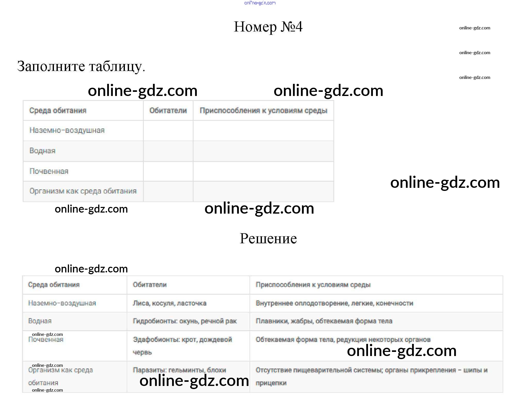 Готовые домашние задания по Биологии за 7 класс Рабочая тетрадь Пасечник Линия жизни 2020 - §2. Среды обитания и сезонные изменения в жизни животных Тетрадь 2020 4
