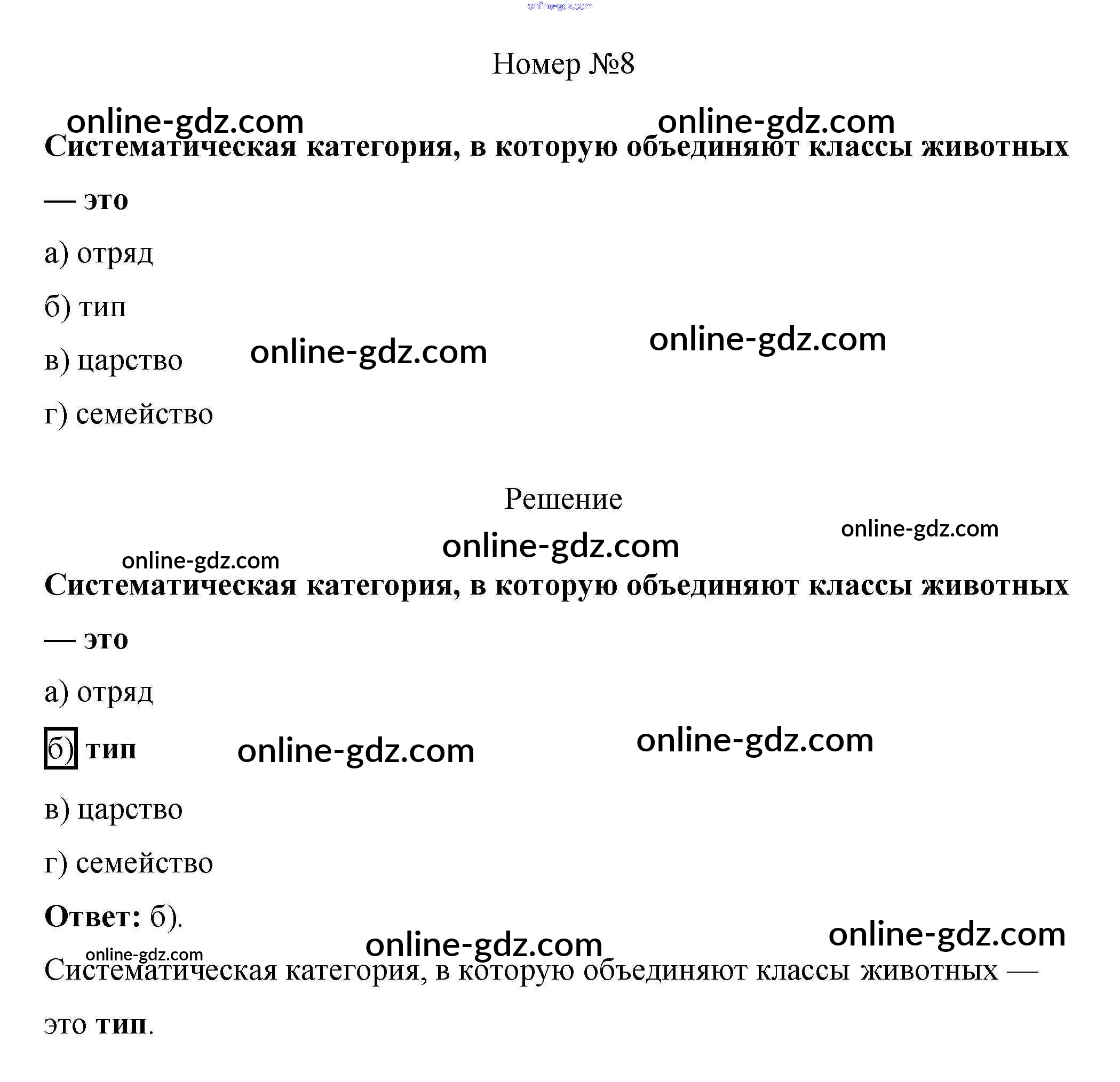 Готовые домашние задания по Биологии за 7 класс Рабочая тетрадь Пасечник Линия жизни 2020 - Задание 1 Тестовый контроль 1 8