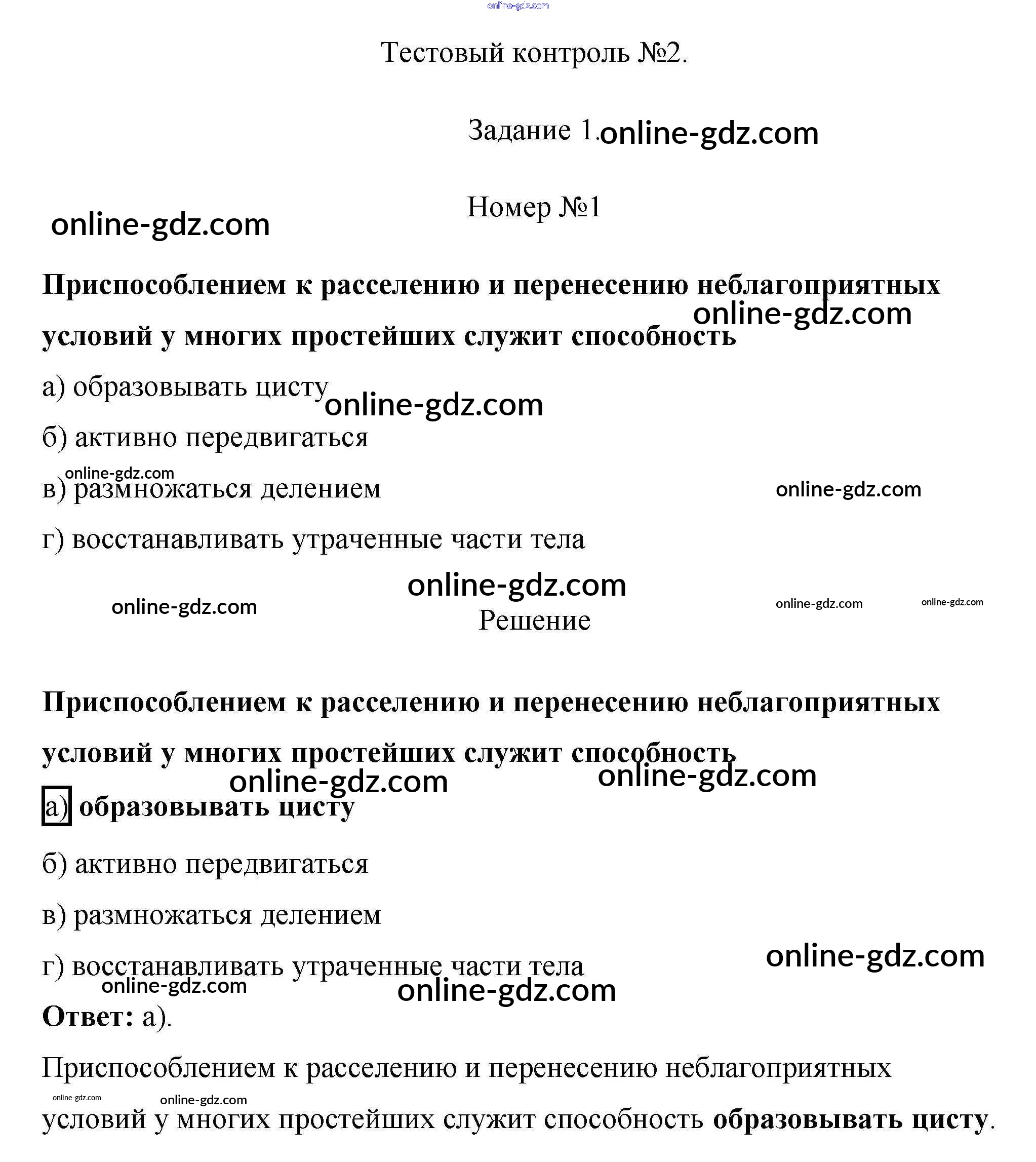 Готовые домашние задания по Биологии за 7 класс Рабочая тетрадь Пасечник Линия жизни 2020 - Тестовый контроль 2 Тетрадь 2020 1
