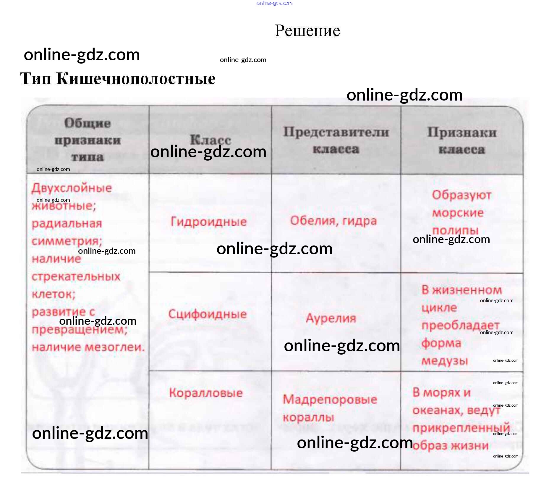 Готовые домашние задания по Биологии за 7 класс Рабочая тетрадь Пасечник Линия жизни 2020 - §8. Многообразие кишечнополостных Тетрадь 2020 2
