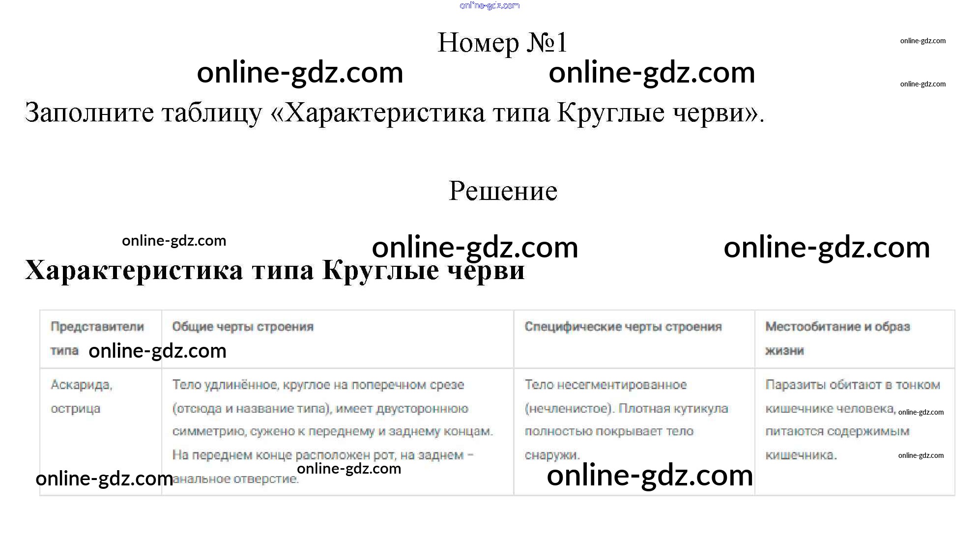 Готовые домашние задания по Биологии за 7 класс Рабочая тетрадь Пасечник Линия жизни 2020 - §10. Тип Круглые черви и тип Кольчатые черви Тетрадь 2020 1