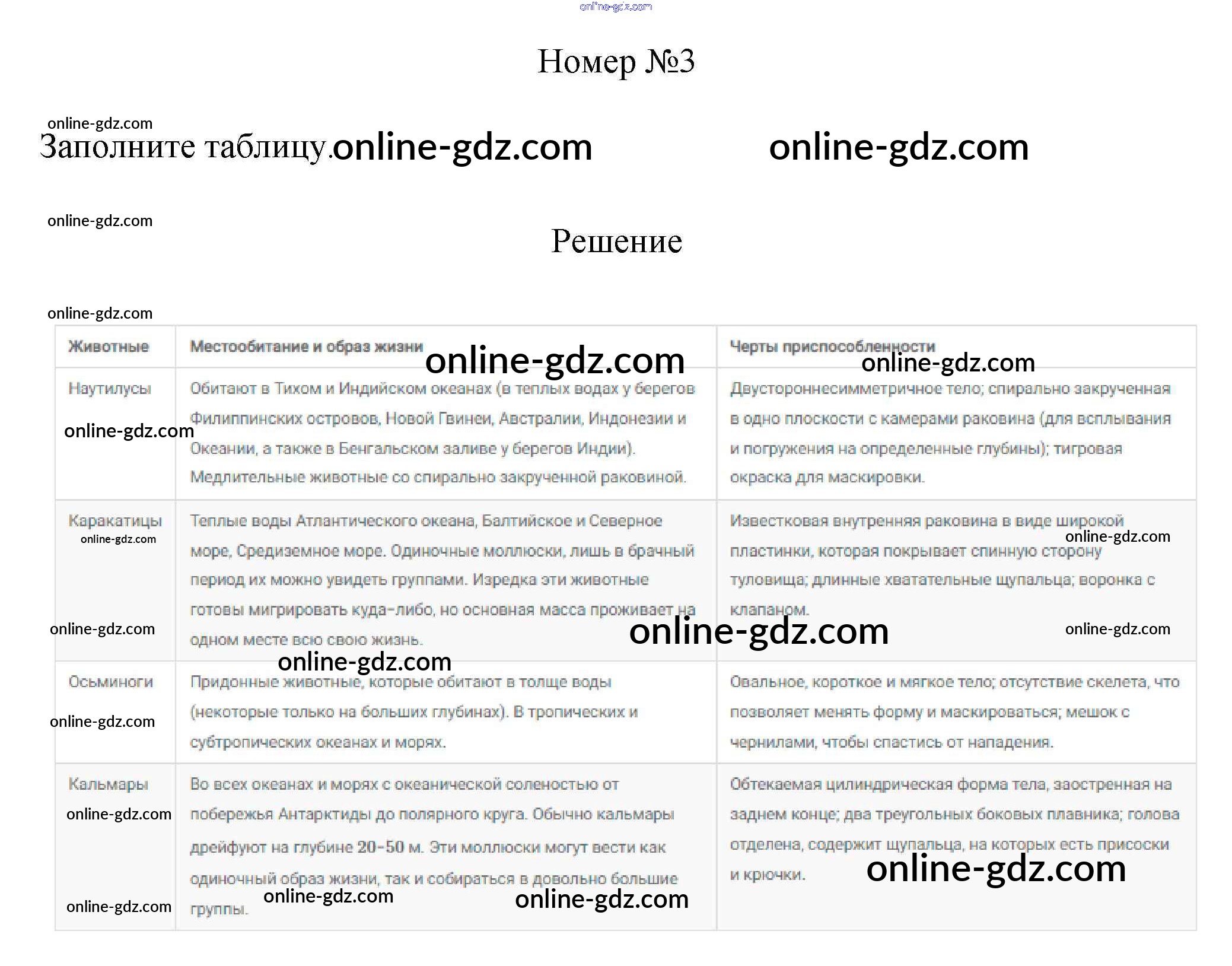 Готовые домашние задания по Биологии за 7 класс Рабочая тетрадь Пасечник Линия жизни 2020 - §12. Класс Головоногие моллюски Тетрадь 2020 3