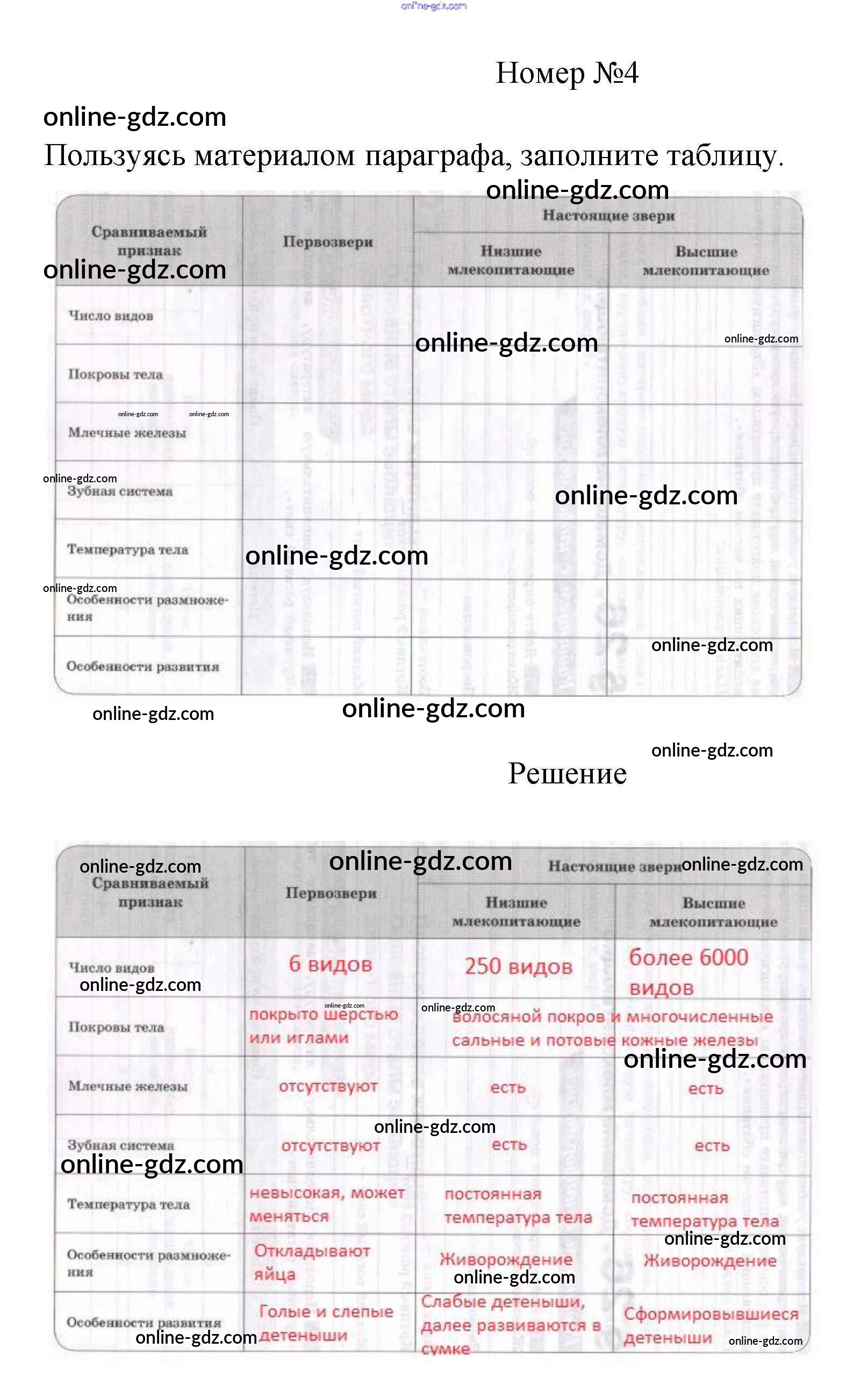 Готовые домашние задания по Биологии за 7 класс Рабочая тетрадь Пасечник Линия жизни 2020 - §25. Многообразие млекопитающих Тетрадь 2020 4