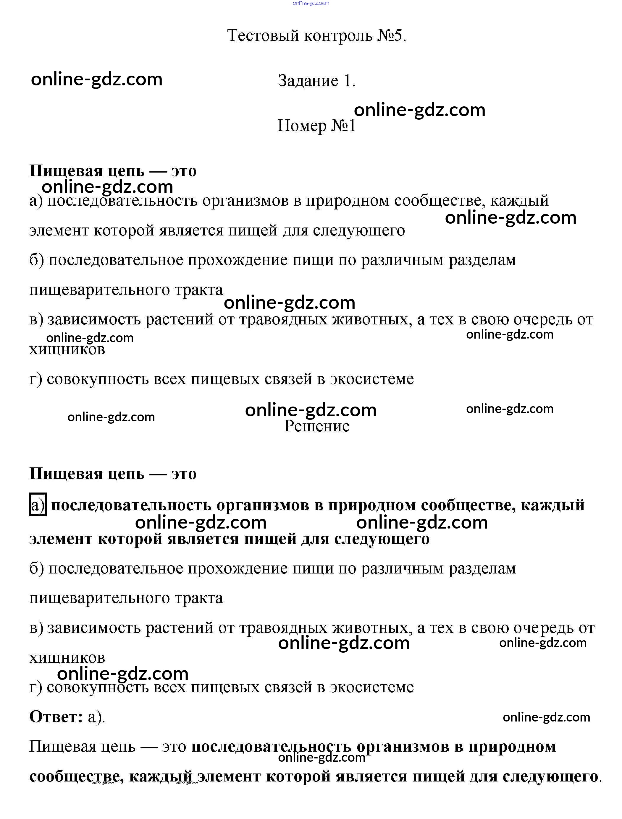 Готовые домашние задания по Биологии за 7 класс Рабочая тетрадь Пасечник Линия жизни 2020 - Тестовый контроль 5 Тетрадь 2020 1