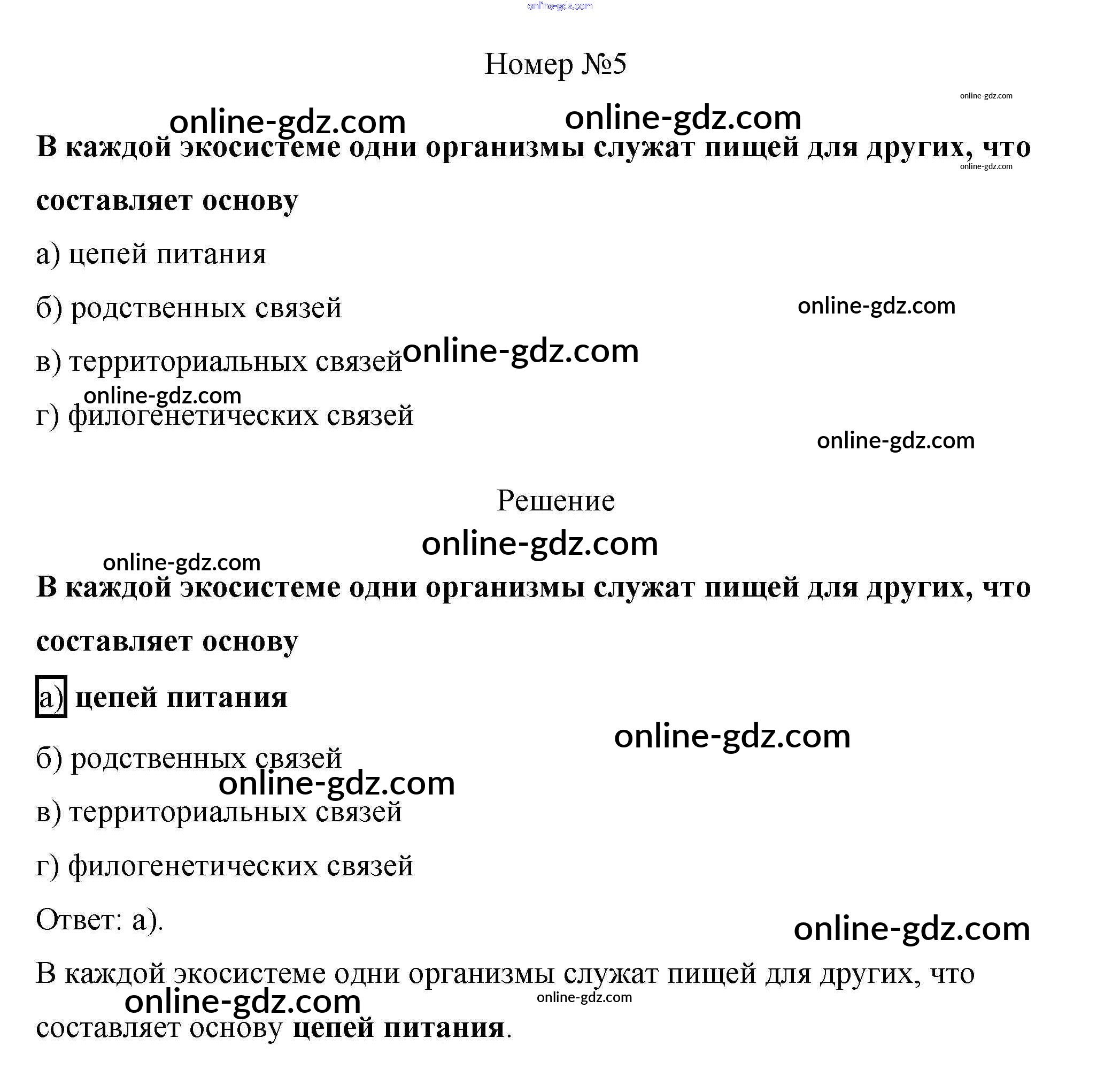 Готовые домашние задания по Биологии за 7 класс Рабочая тетрадь Пасечник Линия жизни 2020 - Тестовый контроль 5 Тетрадь 2020 5