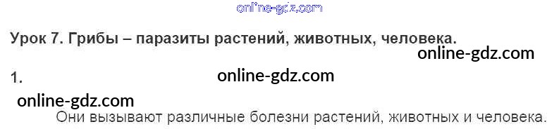 Готовые домашние задания по Биологии за 7 класс Рабочая тетрадь Пасечник Линия жизни 2020 - §7. Грибы - паразиты растений, животных, человека Тетрадь 2016 1