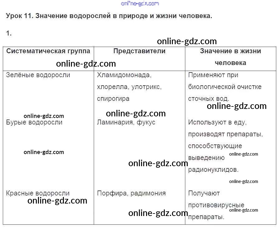 тетрадь 2016 / §11. значение водорослей в природе и жизни человека / 1