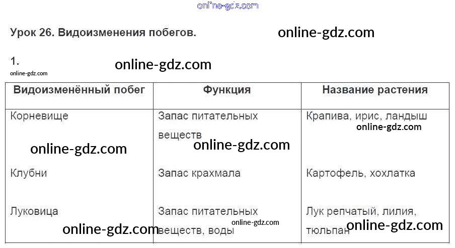Готовые домашние задания по Биологии за 7 класс Рабочая тетрадь Пасечник Линия жизни 2020 - §26. Видоизменение побегов Тетрадь 2016 1
