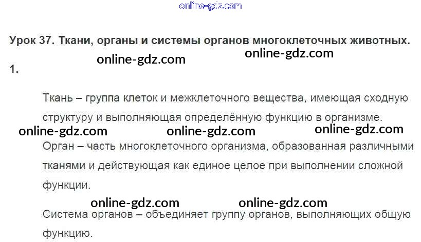 Готовые домашние задания по Биологии за 7 класс Рабочая тетрадь Пасечник Линия жизни 2020 - §37. Ткани, органы и системы органов многоклеточных животных Тетрадь 2016 1