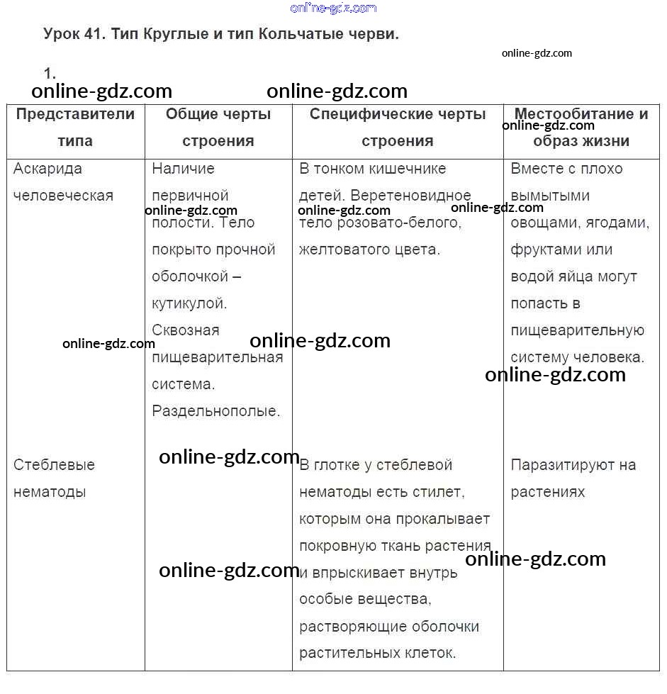 тетрадь 2016 / §41. тип Круглые и тип Кольчатые черви / 1