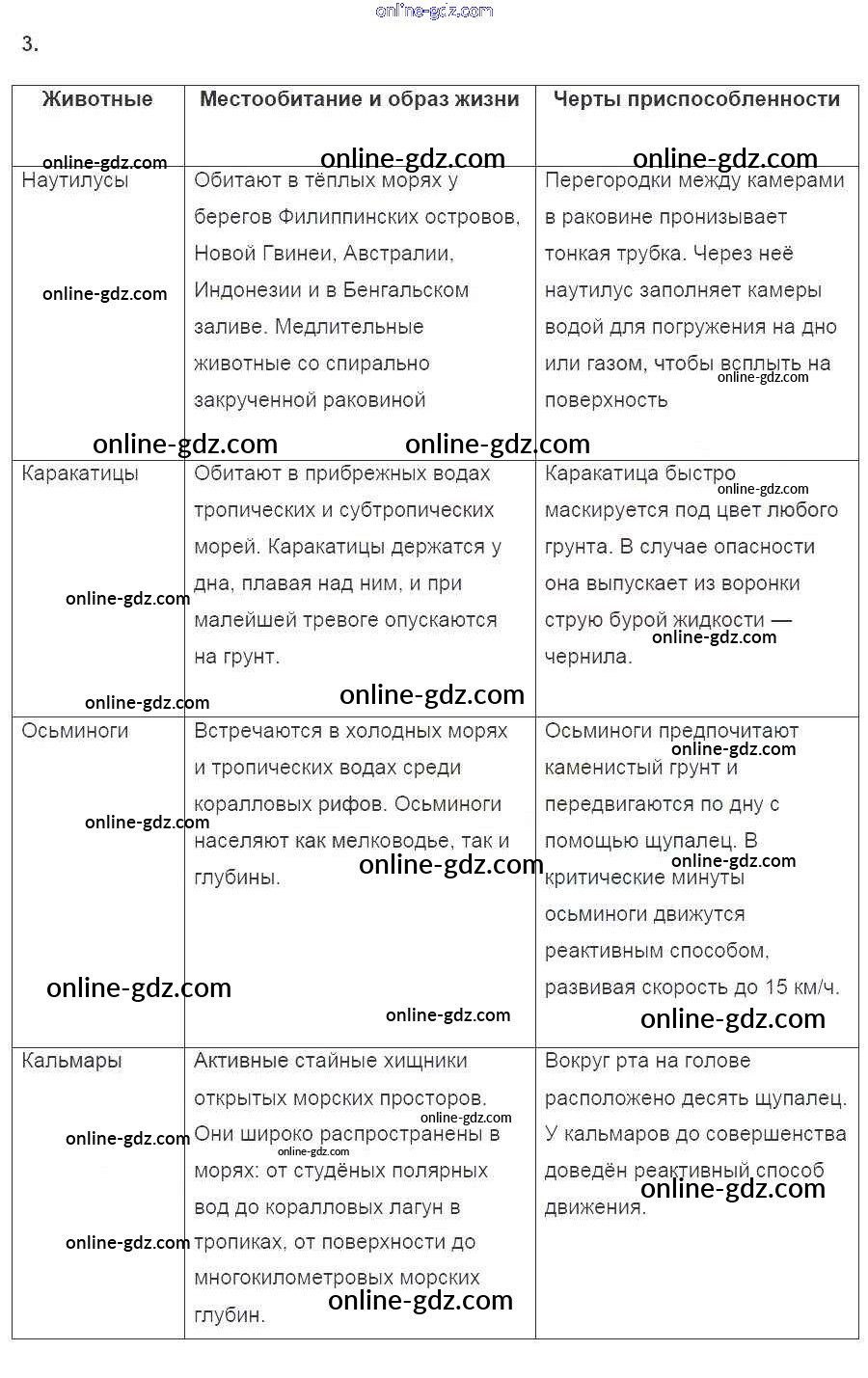 тетрадь 2016 / §43. класс Головоногие моллюски / 3
