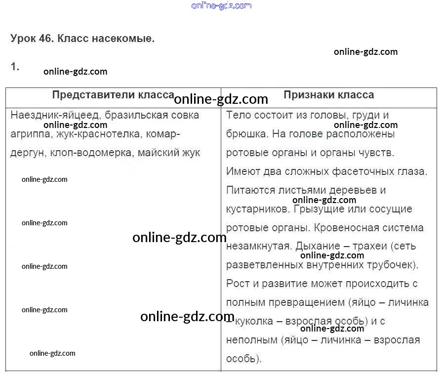 Готовые домашние задания по Биологии за 7 класс Рабочая тетрадь Пасечник Линия жизни 2020 - §46. Класс Насекомые Тетрадь 2016 1