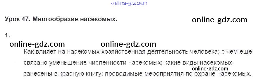 Готовые домашние задания по Биологии за 7 класс Рабочая тетрадь Пасечник Линия жизни 2020 - §47. Многообразие насекомых Тетрадь 2016 1