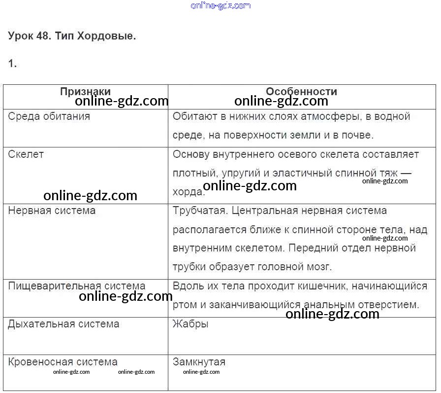 Готовые домашние задания по Биологии за 7 класс Рабочая тетрадь Пасечник Линия жизни 2020 - §48. Тип Хордовые Тетрадь 2016 1