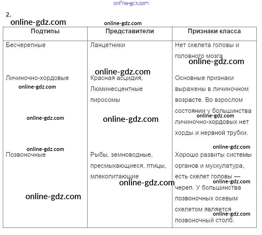 Готовые домашние задания по Биологии за 7 класс Рабочая тетрадь Пасечник Линия жизни 2020 - §48. Тип Хордовые Тетрадь 2016 2