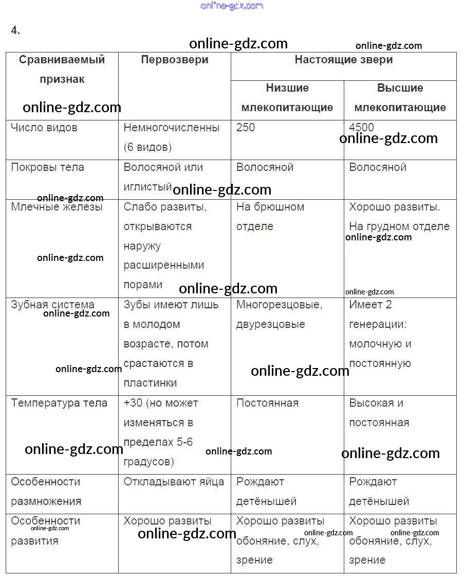 Готовые домашние задания по Биологии за 7 класс Рабочая тетрадь Пасечник Линия жизни 2020 - §56. Многообразие зверей Тетрадь 2016 4