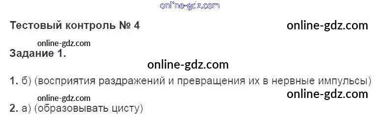 Готовые домашние задания по Биологии за 7 класс Рабочая тетрадь Пасечник Линия жизни 2020 - Задание 1 Тестовый контроль 4 1