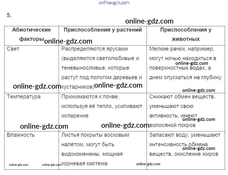 Готовые домашние задания по Биологии за 7 класс Рабочая тетрадь Пасечник Линия жизни 2020 - §62. Среда обитания организмов Тетрадь 2016 5