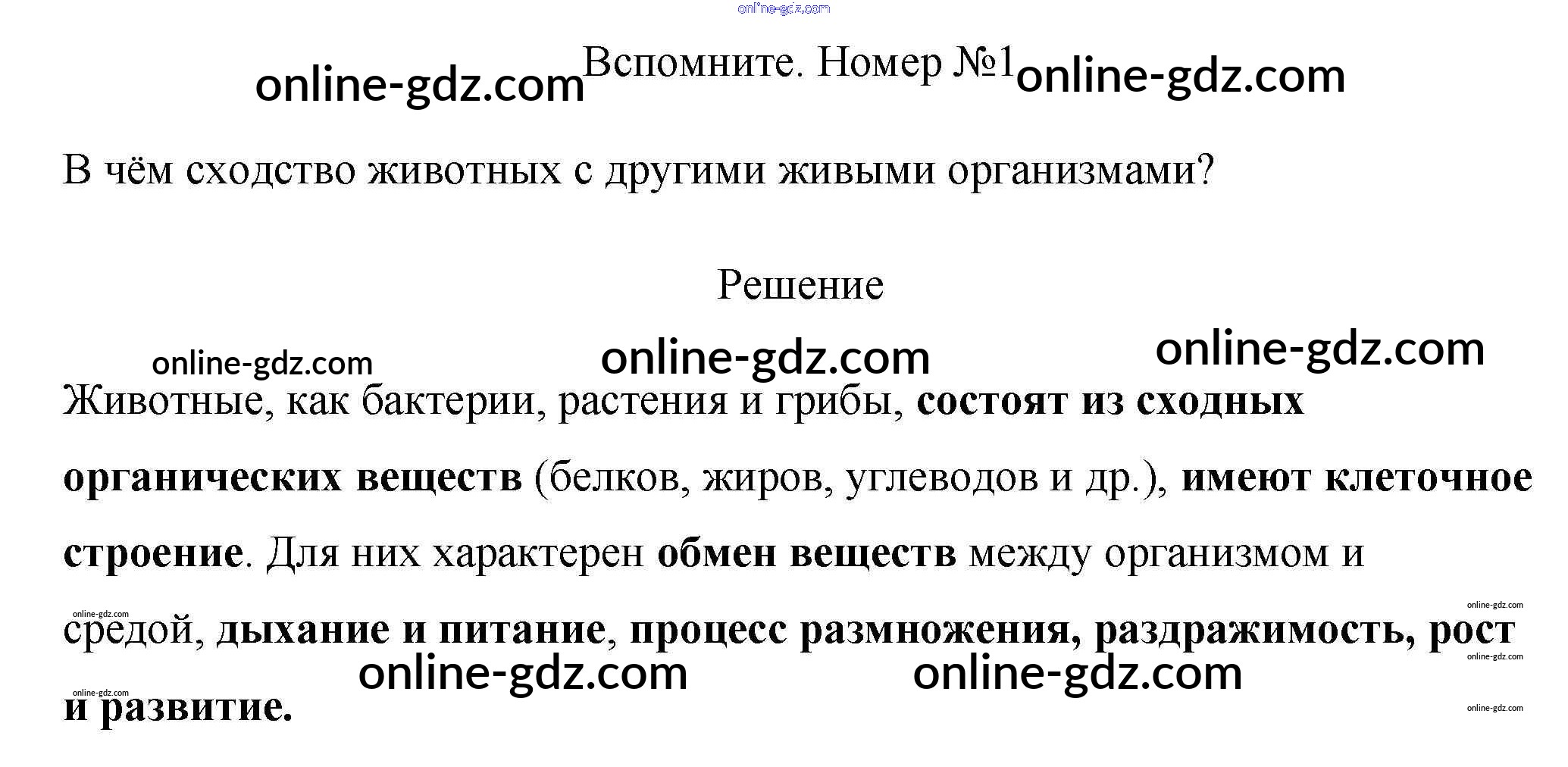 §1. особенности, многообразие и классификация животных / вспомните / 1