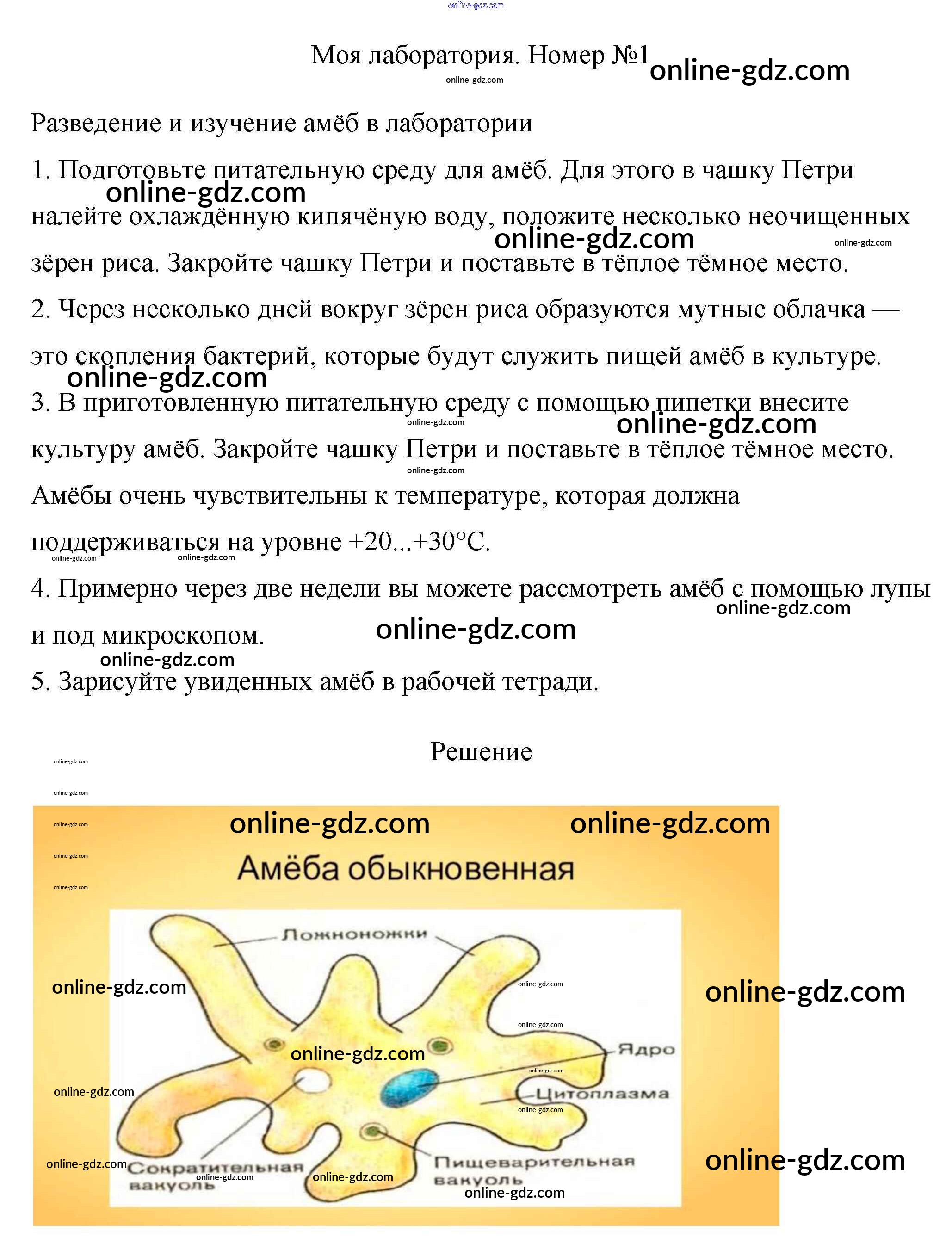 Готовые домашние задания по Биологии за 7 класс Учебник Пасечник, Суматохин Линия жизни 2022 - Моя лаборатория §3. Общая характеристика одноклеточных. Корненожки 1