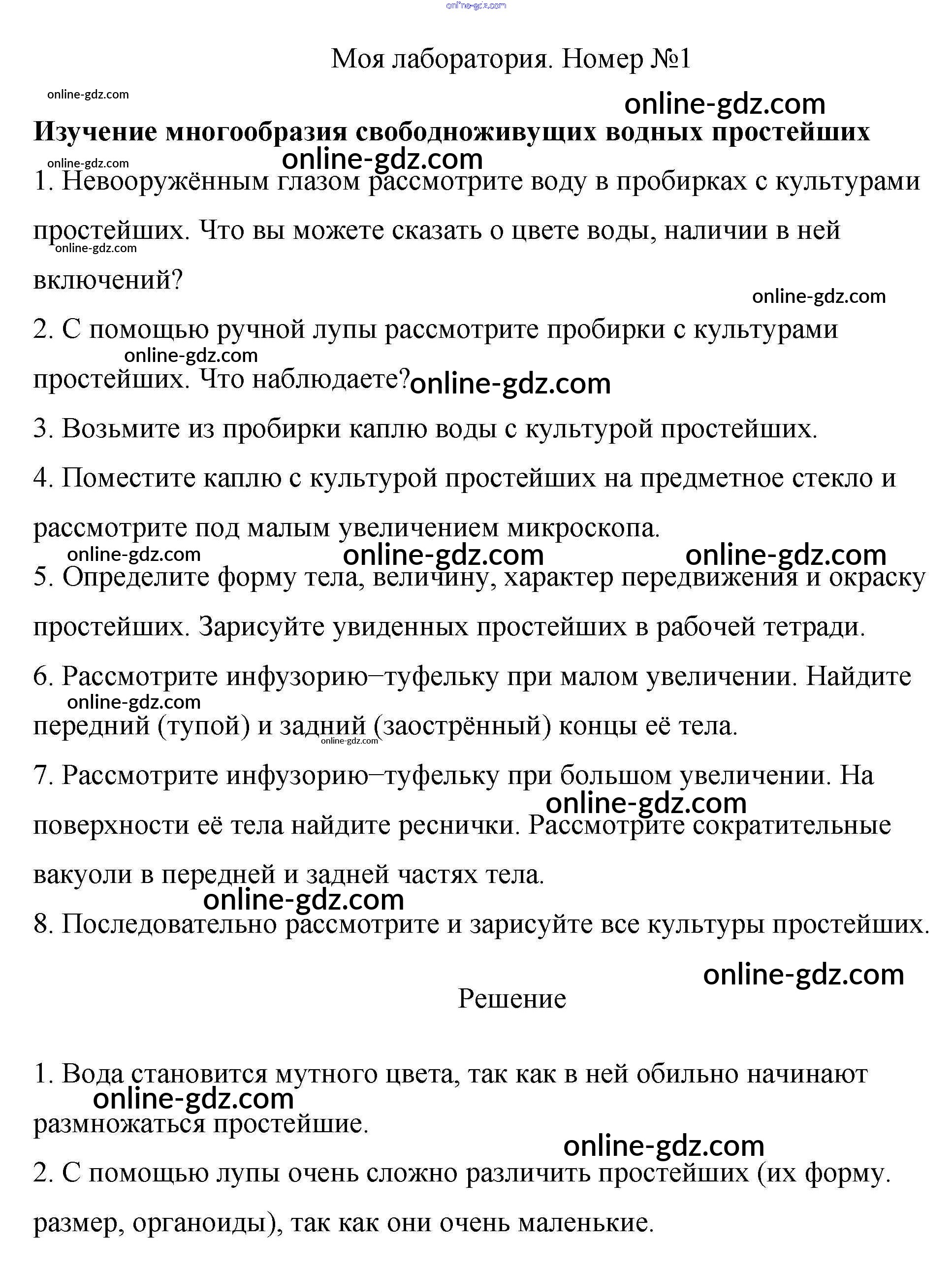 Готовые домашние задания по Биологии за 7 класс Учебник Пасечник, Суматохин Линия жизни 2022 - Моя лаборатория §4. Жгутиконосцы и инфузории 1