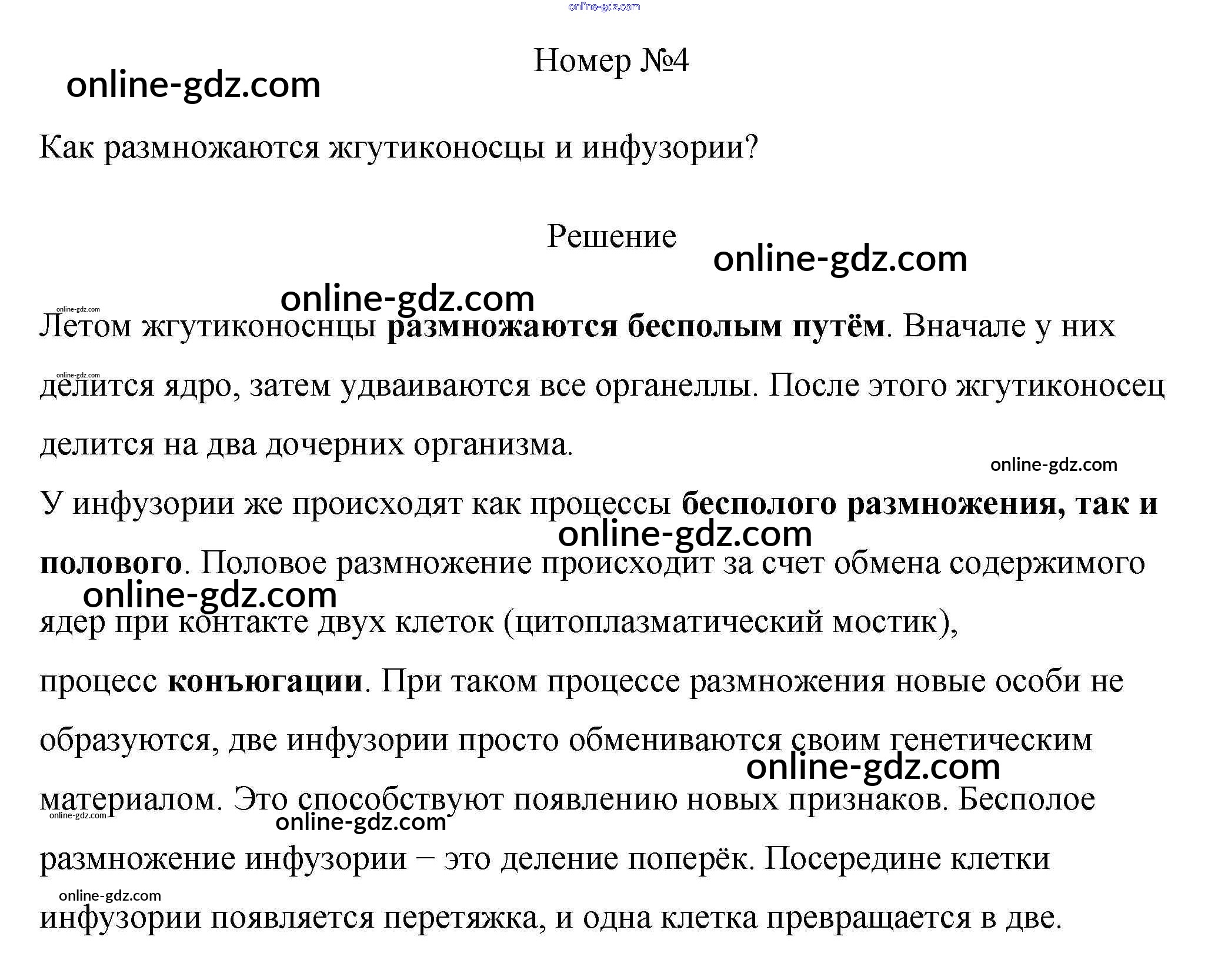 Готовые домашние задания по Биологии за 7 класс Учебник Пасечник, Суматохин Линия жизни 2022 - Вопросы §4. Жгутиконосцы и инфузории 4