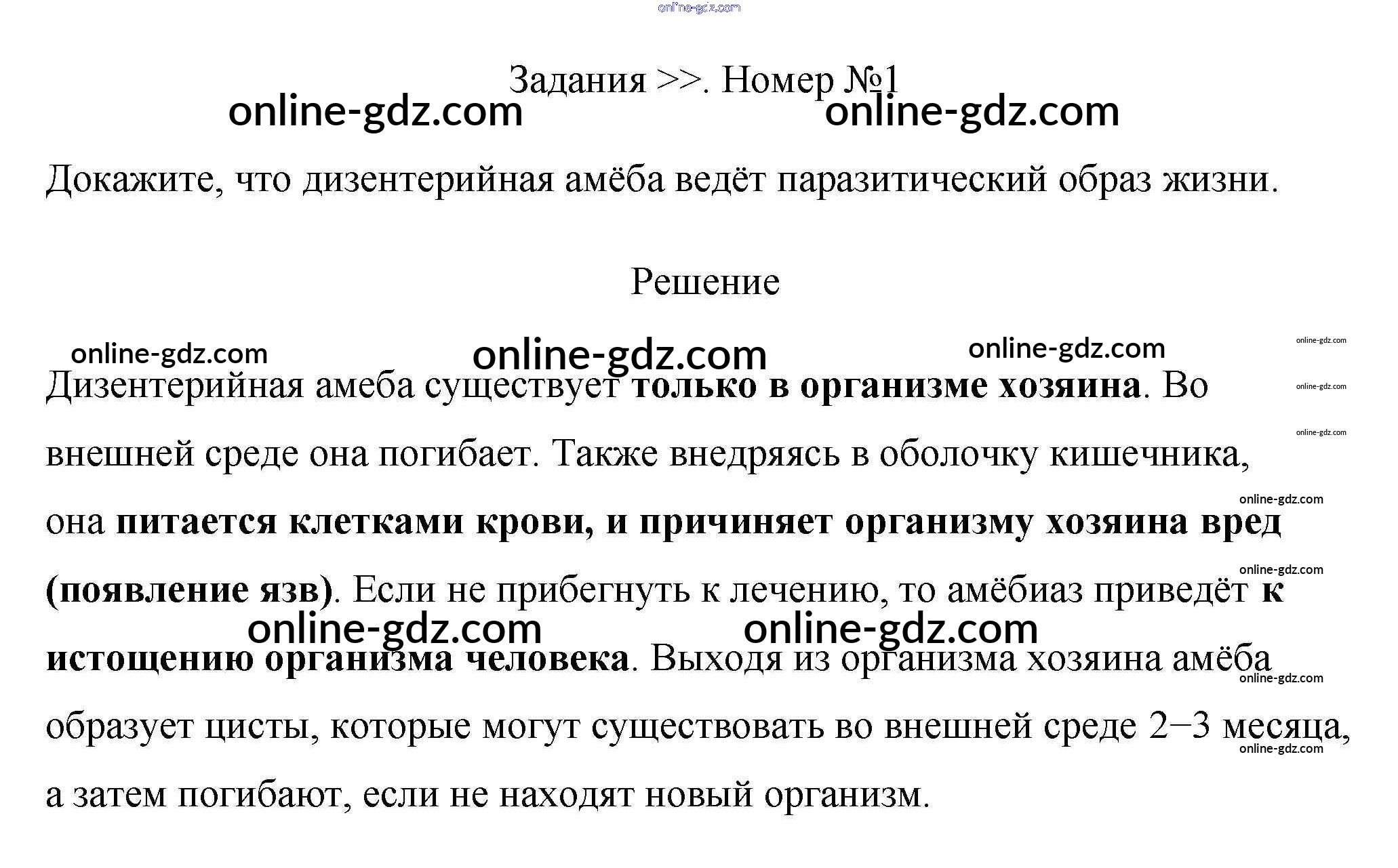 Готовые домашние задания по Биологии за 7 класс Учебник Пасечник, Суматохин Линия жизни 2022 - Задания §5. Паразитические простейшие. Значение простейших 1