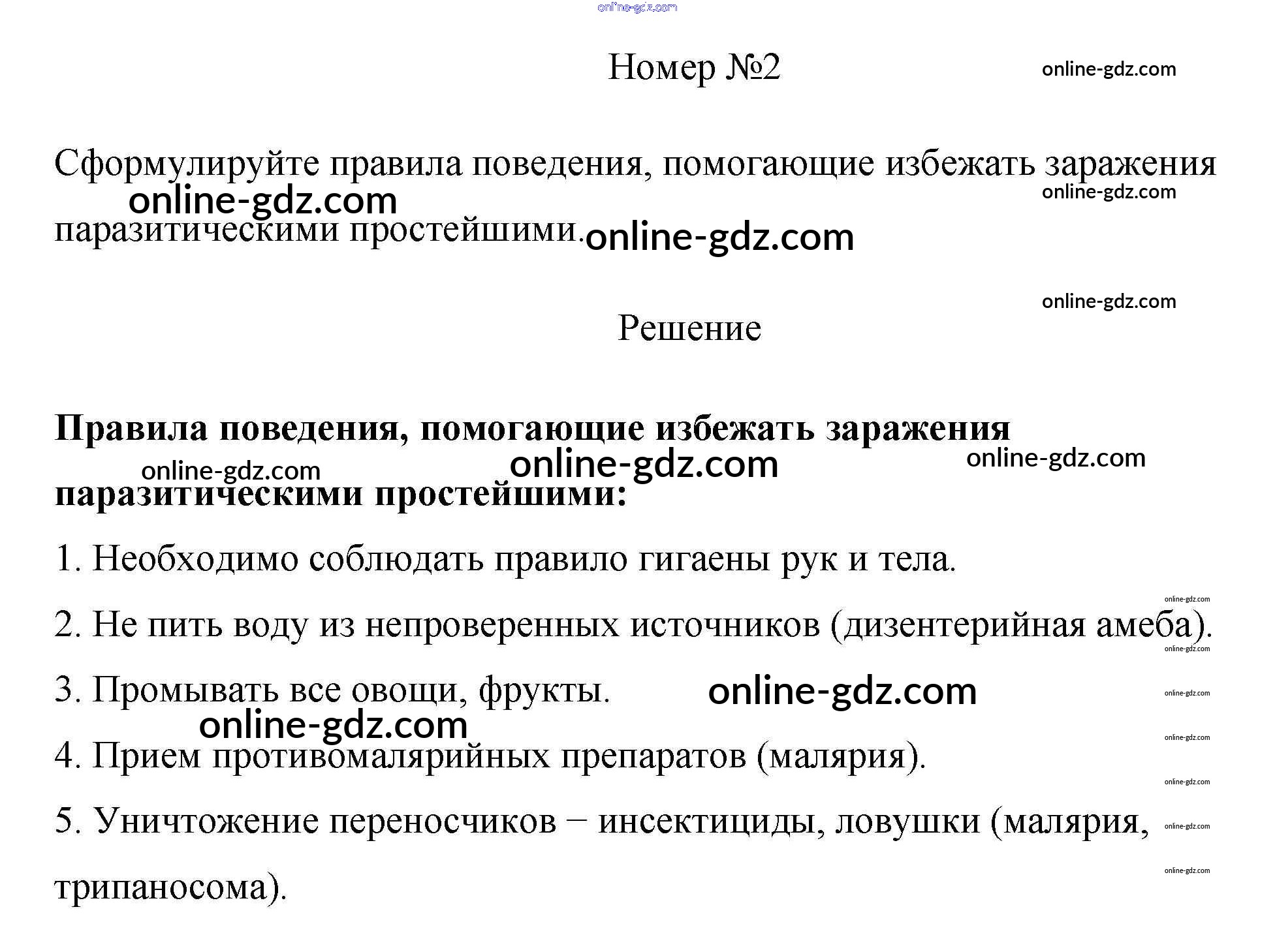 Готовые домашние задания по Биологии за 7 класс Учебник Пасечник, Суматохин Линия жизни 2022 - Задания §5. Паразитические простейшие. Значение простейших 2