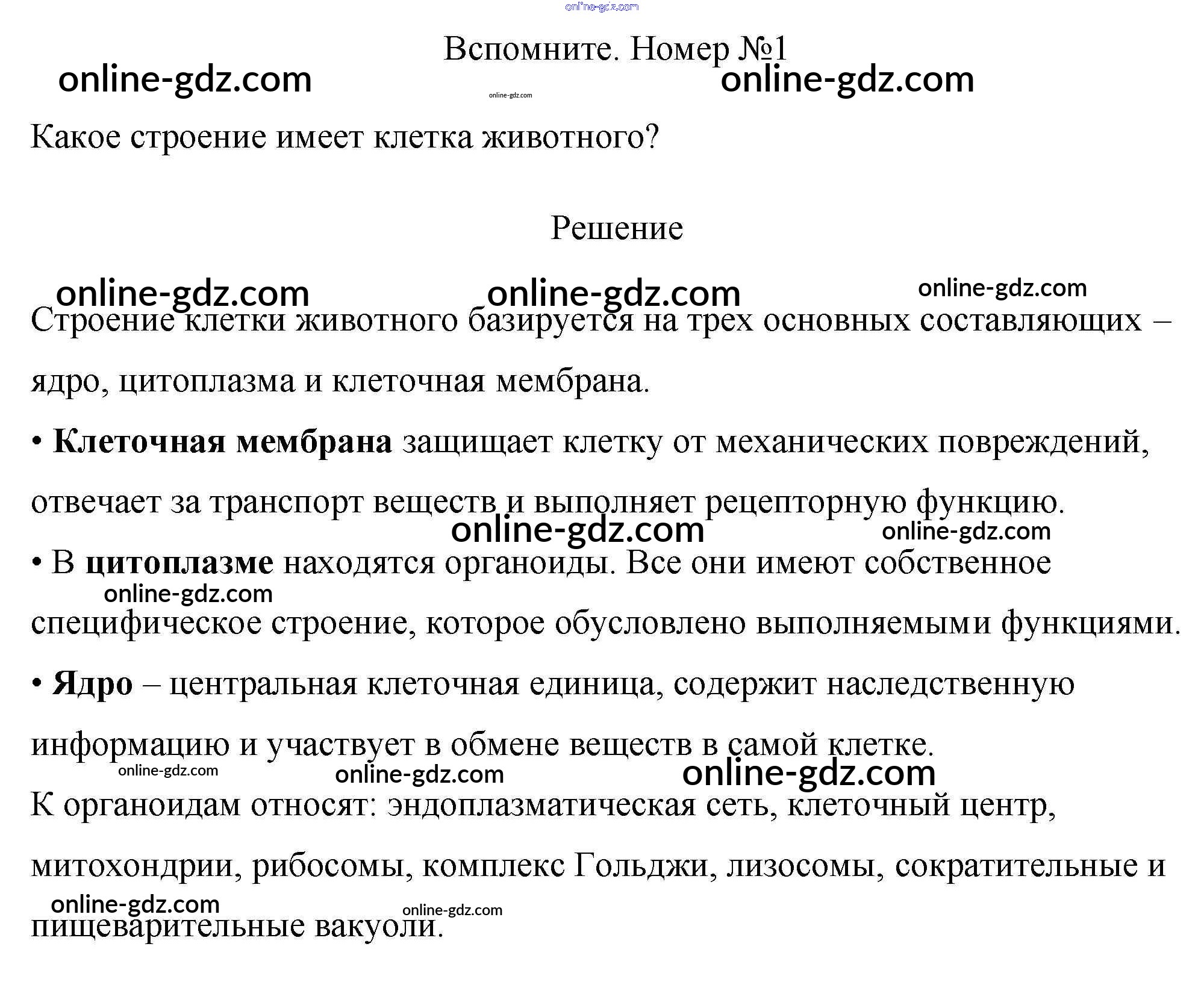 §6. организм многоклеточного животного / вспомните / 1
