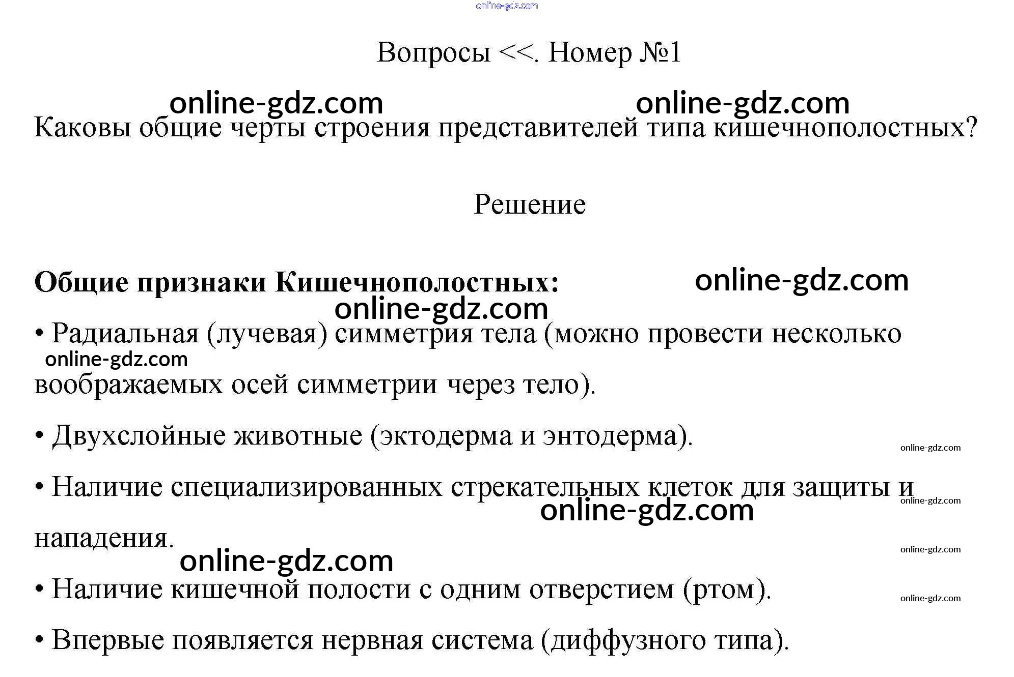 Готовые домашние задания по Биологии за 7 класс Учебник Пасечник, Суматохин Линия жизни 2022 - Вопросы §8. Многообразие кишечнополостных 1
