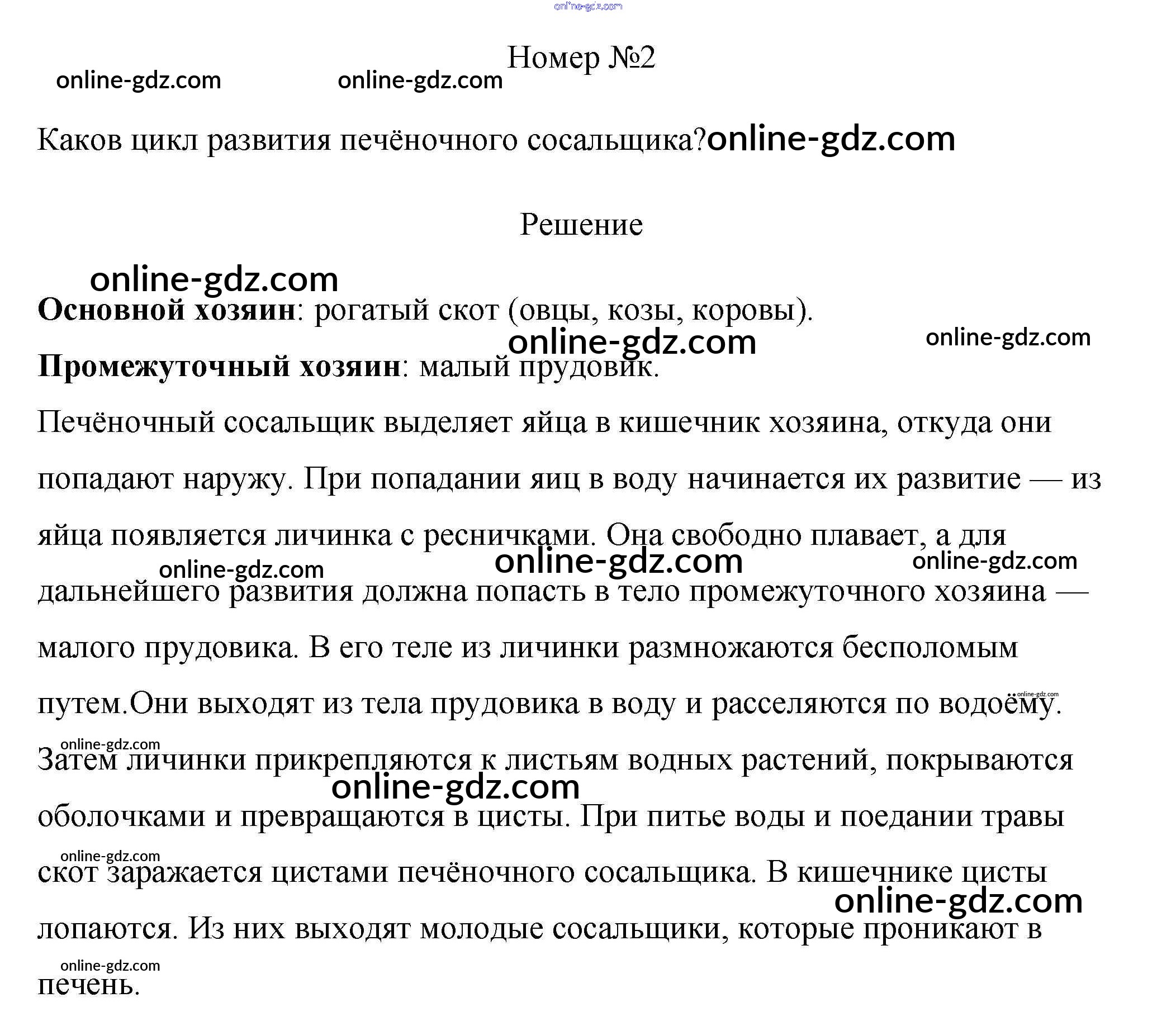 Готовые домашние задания по Биологии за 7 класс Учебник Пасечник, Суматохин Линия жизни 2022 - Вопросы §9. Общая характеристика червей. Тип плоские черви 2