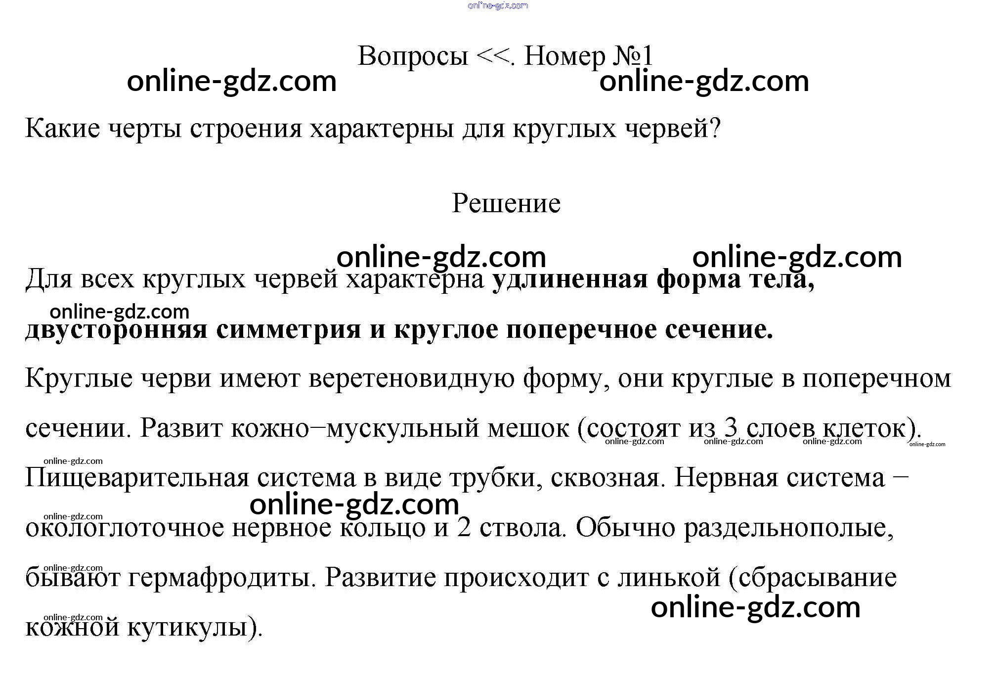Готовые домашние задания по Биологии за 7 класс Учебник Пасечник, Суматохин Линия жизни 2022 - Вопросы §10. Тип круглые черви и тип кольчатые черви 1