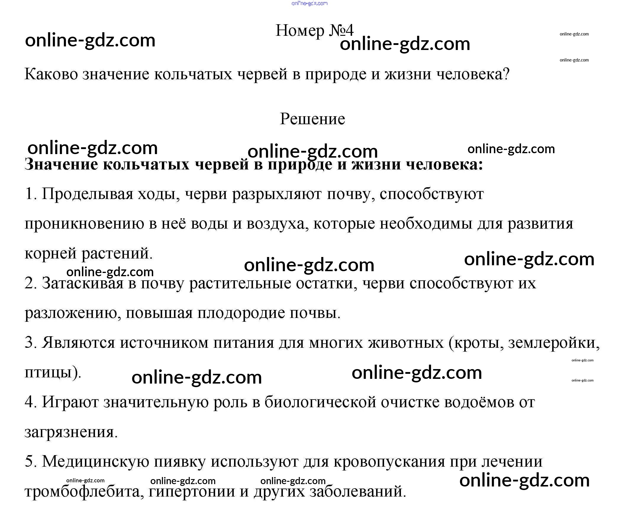 Готовые домашние задания по Биологии за 7 класс Учебник Пасечник, Суматохин Линия жизни 2022 - Вопросы §10. Тип круглые черви и тип кольчатые черви 4