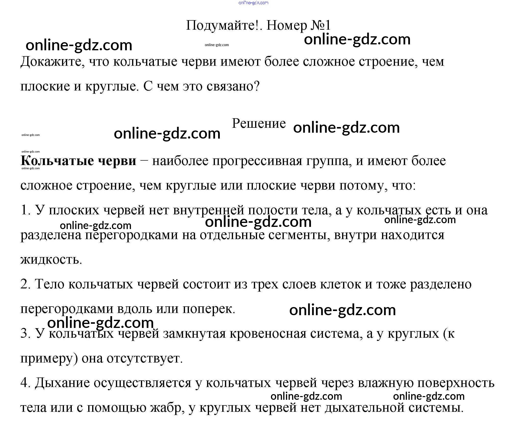 Готовые домашние задания по Биологии за 7 класс Учебник Пасечник, Суматохин Линия жизни 2022 - Подумайте §10. Тип круглые черви и тип кольчатые черви 1
