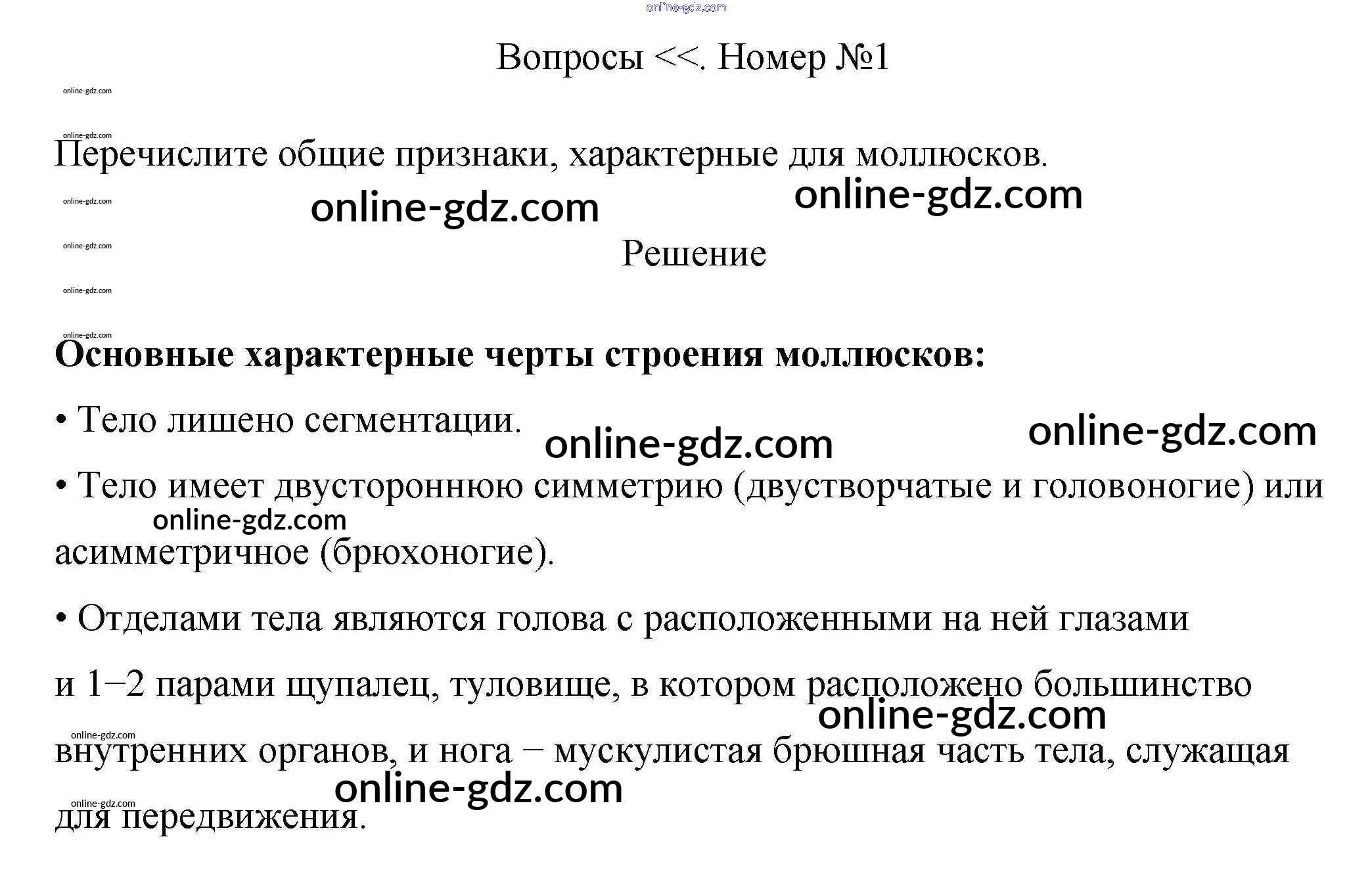 Готовые домашние задания по Биологии за 7 класс Учебник Пасечник, Суматохин Линия жизни 2022 - Вопросы §11. Тип моллюски. Класс брюхоногие и класс двухстворчатые моллюски 1