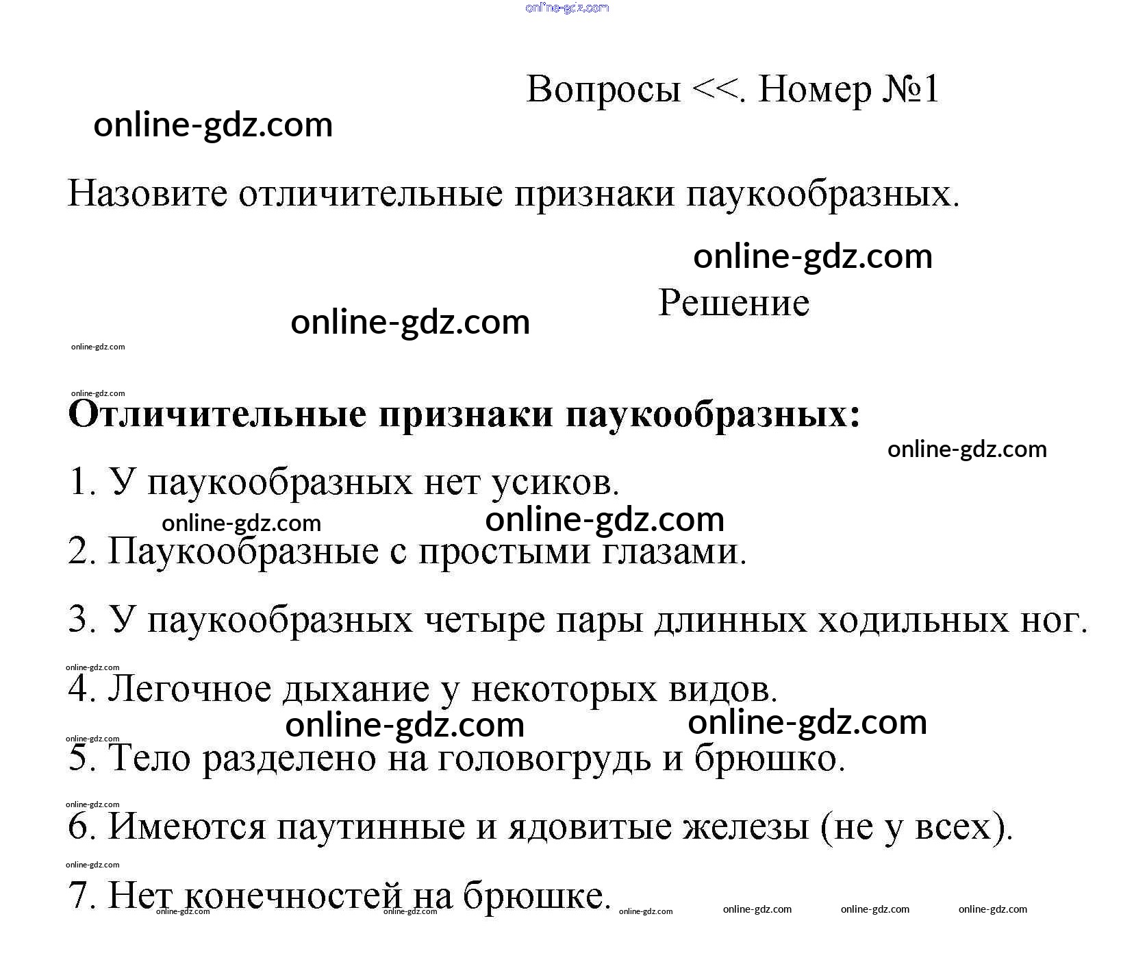 Готовые домашние задания по Биологии за 7 класс Учебник Пасечник, Суматохин Линия жизни 2022 - Вопросы §14. Класс паукообразных 1