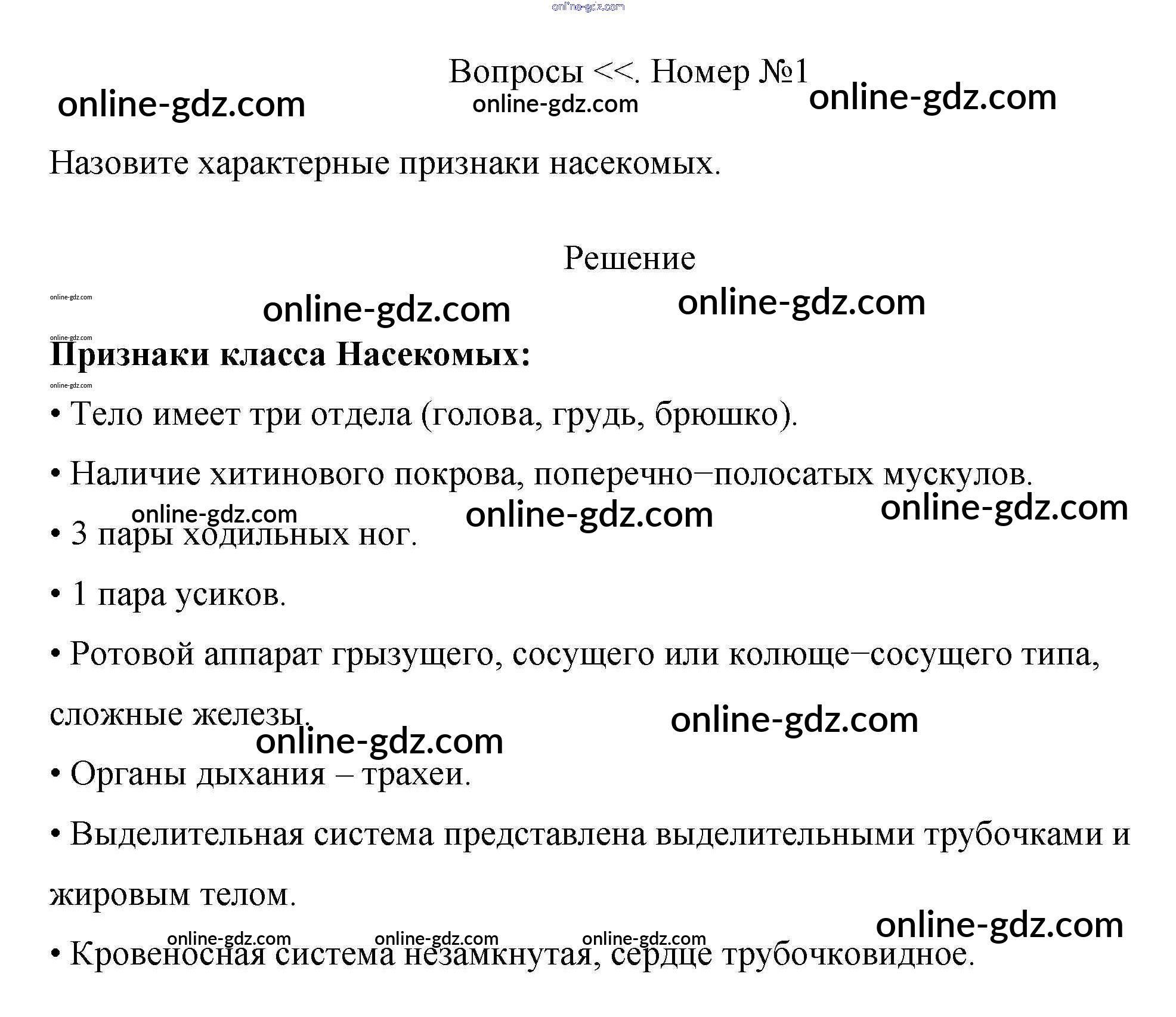 Готовые домашние задания по Биологии за 7 класс Учебник Пасечник, Суматохин Линия жизни 2022 - Вопросы §15. Класс насекомые 1