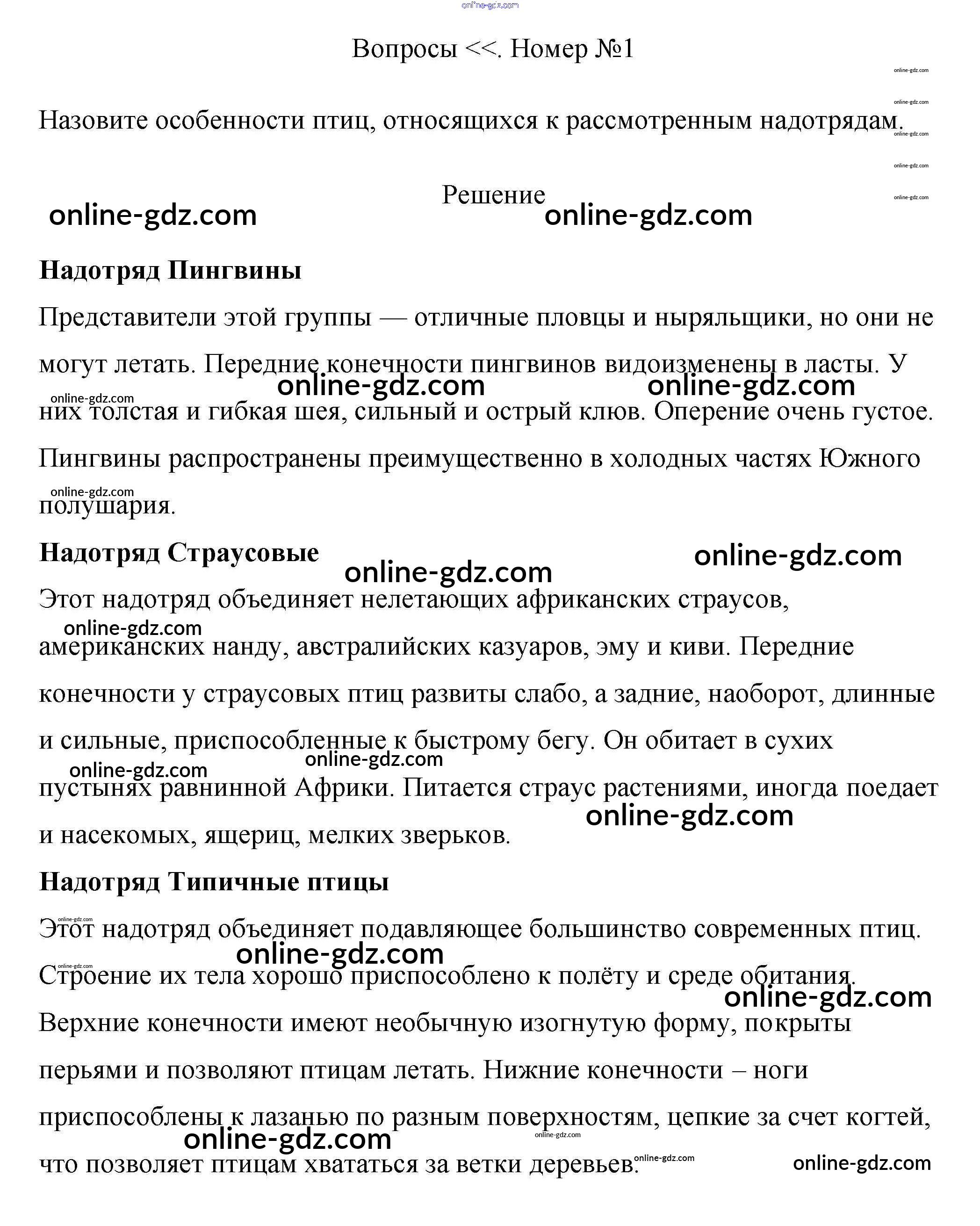 §23. многообразие птиц и их значение. птицеводство / вопрос / 1