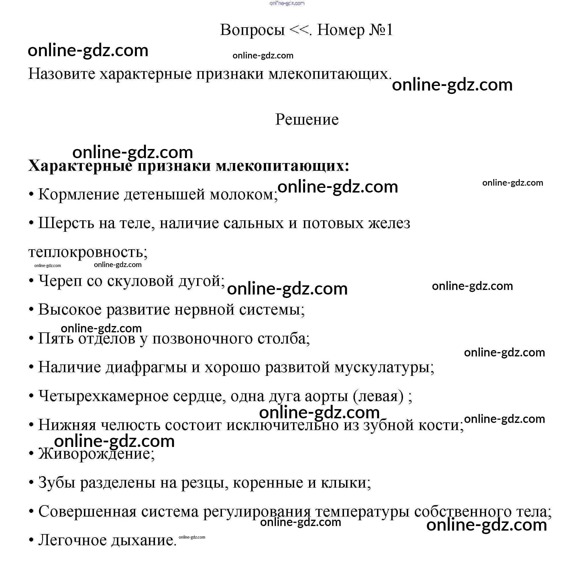 Готовые домашние задания по Биологии за 7 класс Учебник Пасечник, Суматохин Линия жизни 2022 - Вопросы §24. Класс млекопитающие 1