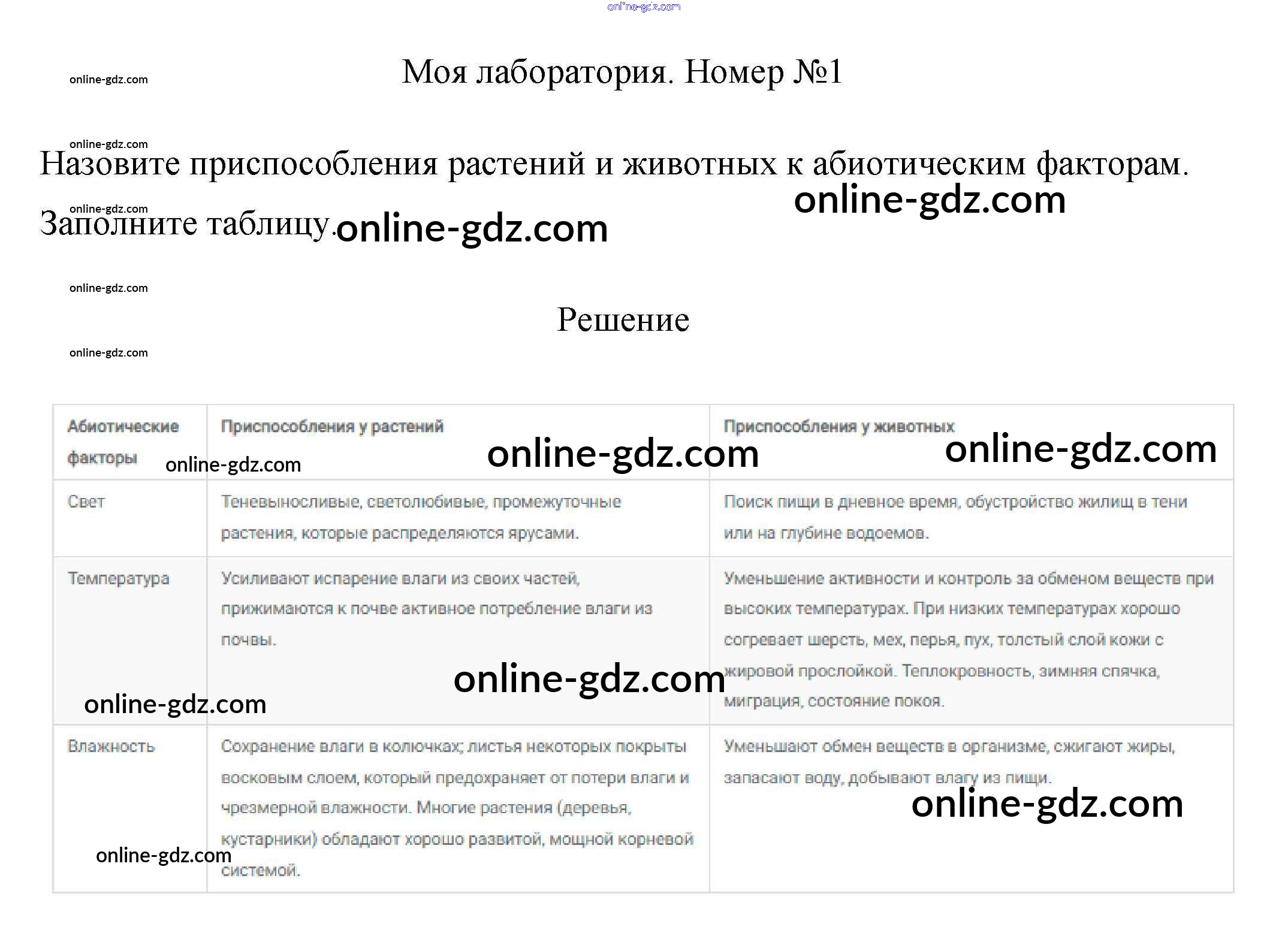 Готовые домашние задания по Биологии за 7 класс Учебник Пасечник, Суматохин Линия жизни 2022 - Моя лаборатория §29. Среда обитания организмов. Экологические факторы 1