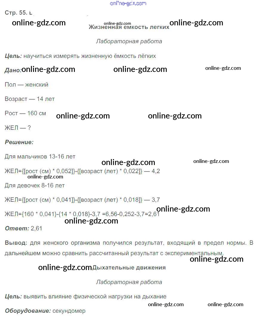 Готовые домашние задания по Биологии за 8 класс Рабочая тетрадь Бодрова 2017 - Страницы 55