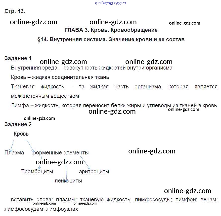 Готовые домашние задания по Биологии за 8 класс Рабочая тетрадь Маш, Драгомилов Алгоритм успеха 2019 - Часть 1. Страницы 43