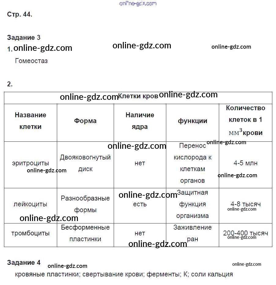 Готовые домашние задания по Биологии за 8 класс Рабочая тетрадь Маш, Драгомилов Алгоритм успеха 2019 - Часть 1. Страницы 44