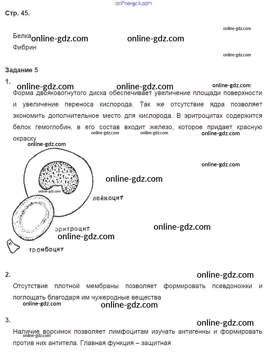 Готовые домашние задания по Биологии за 8 класс Рабочая тетрадь Маш, Драгомилов Алгоритм успеха 2019 - Часть 1. Страницы 45