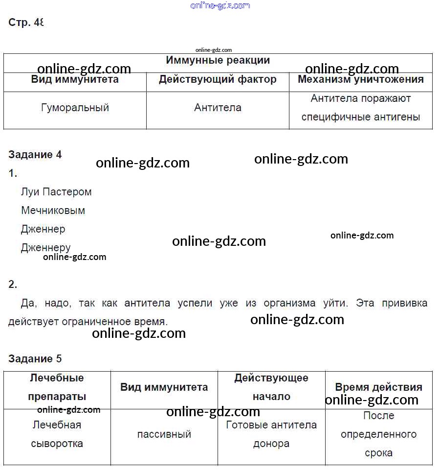 Готовые домашние задания по Биологии за 8 класс Рабочая тетрадь Маш, Драгомилов Алгоритм успеха 2019 - Часть 1. Страницы 48